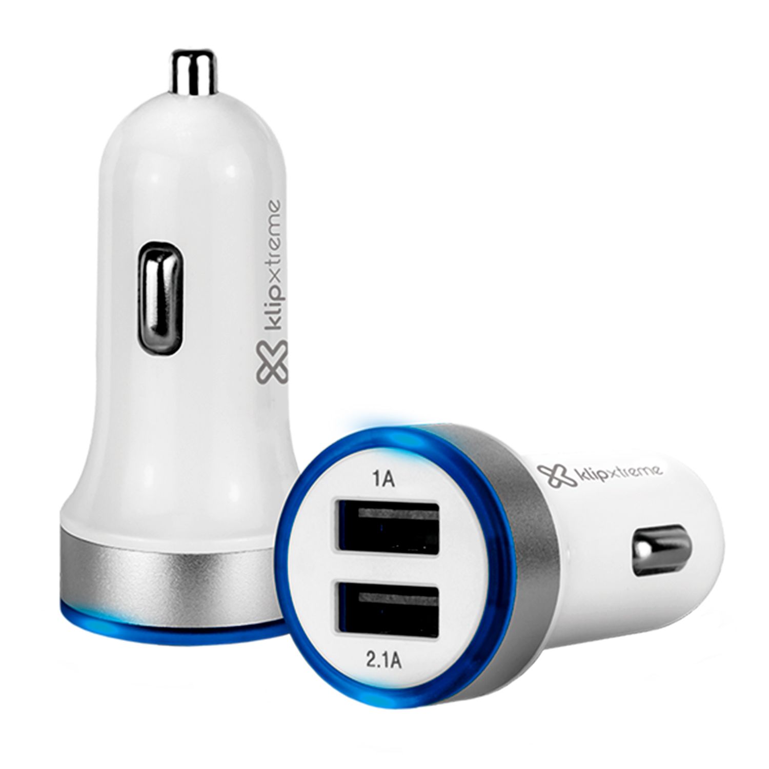 CARGADOR KLIPX USB VEHICULAR/ DUAL 2 PUERTOS USB/ CON LUZ LED/ TOTAL DE AMPS 3.1/ INDICADOR LED