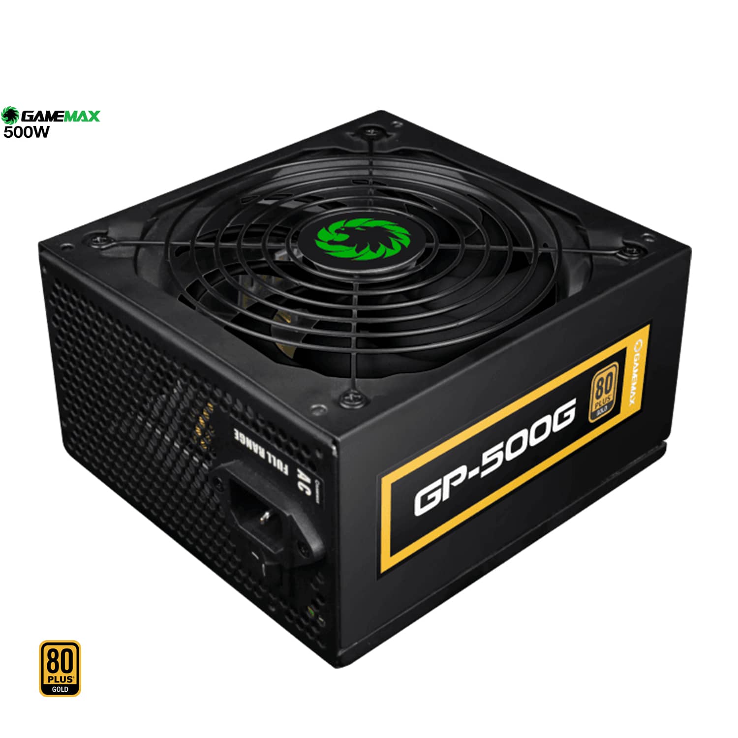 GP500 Gold 90+ ATX 500W, fuente de alimentación, ventilador de 12 cm con control de velocidad inteligente del ventilador, junto con alta eficiencia de oro también bajo un diseño de seguridad de protección múltiple, el cableado de la fuente de alimentación GP-500 Gold está personalizado tanto para un PC empresarial de mayor rendimiento como para el constructor de sistemas de juegos .